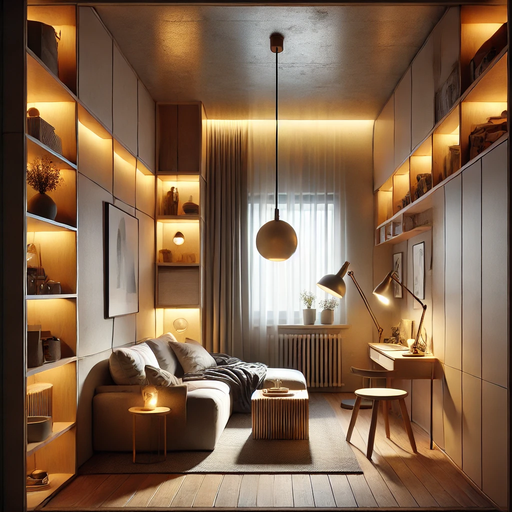 소형 아파트에서 조명은 시각적으로 공간을 넓어 보이게 하는 데 중요한 역할을 합니다. 천장에 고정된 메인 조명뿐만 아니라, 벽면이나 바닥에 설치된 간접 조명을 통해 공간의 깊이감을 부여할 수 있습니다. 예를 들어, 벽면을 따라 설치된 조명이 벽을 부드럽게 비추면 공간이 더 넓어 보이는 효과를 줍니다. 이러한 간접 조명은 특히 좁은 공간에서 큰 효과를 발휘하며, 공간의 구조를 더욱 유연하게 만들 수 있습니다.