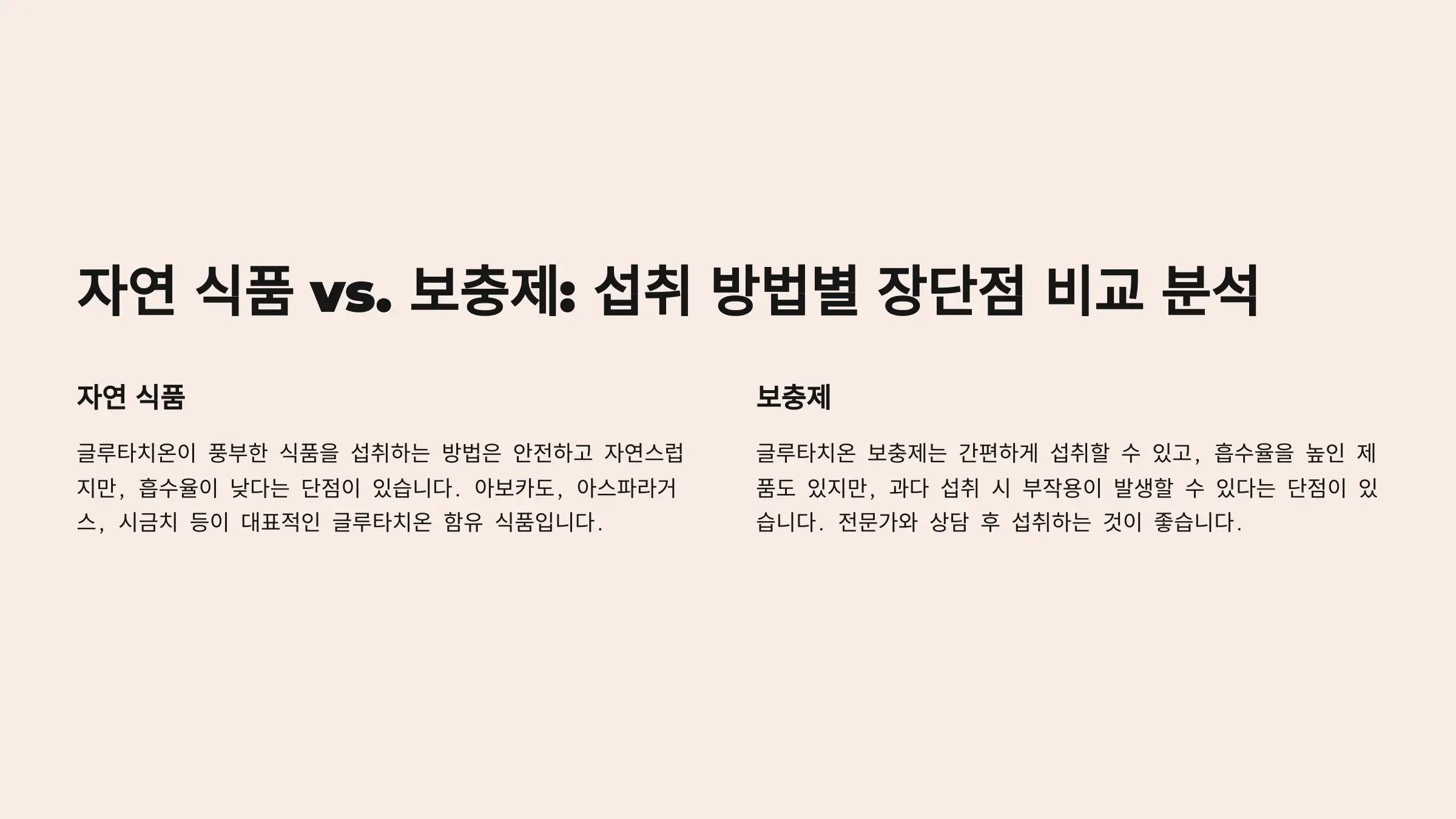 글루타치온을 섭취하는 방법에는 자연식품과 보충제 두 가지가 있어요. 그렇다면, 어떤 방식이 더 효과적일까요? 🤔