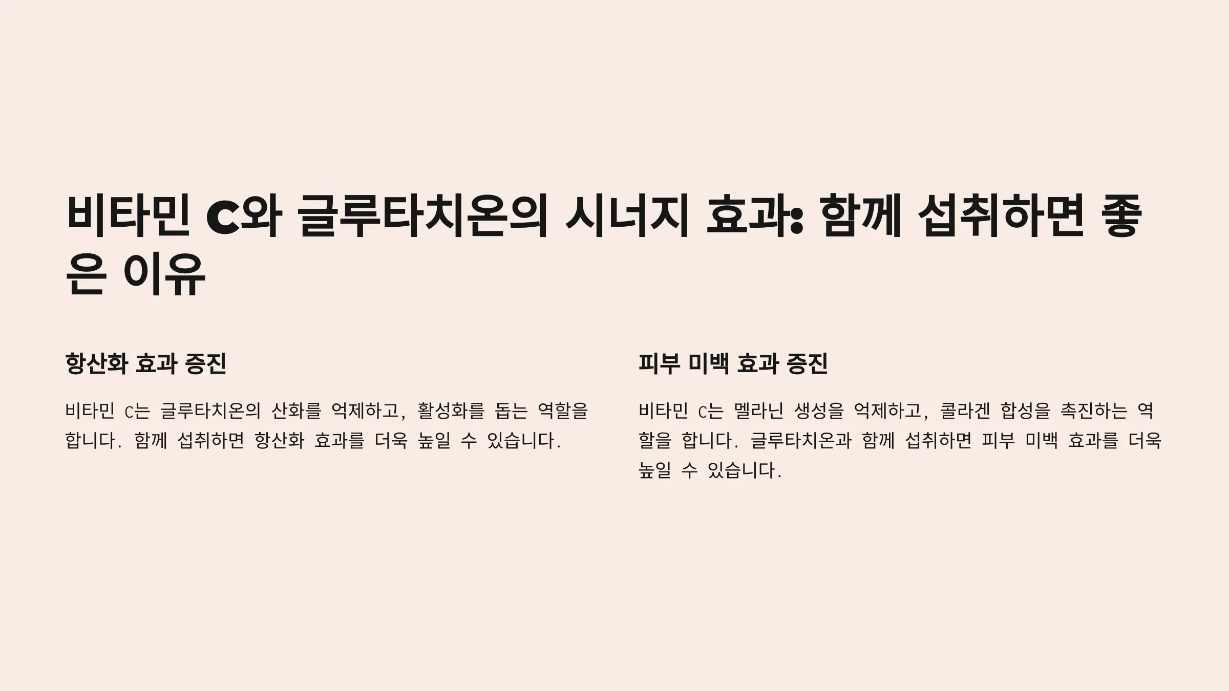 글루타치온과 함께 비타민C를 섭취하면 체내 흡수율이 더욱 증가해요!