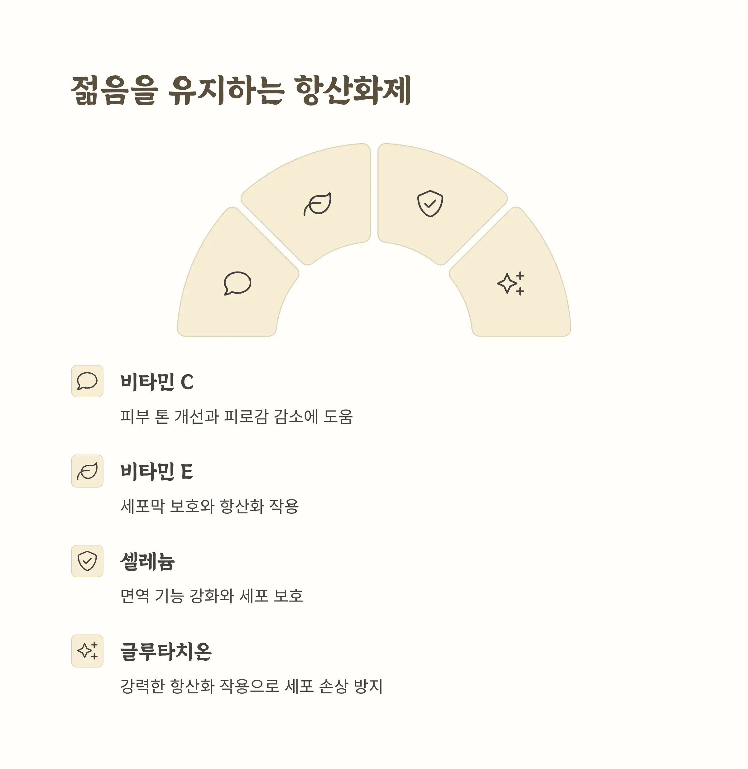 누구나 나이 드는 건 자연스러운 일이지만, 그래도 좀 더 젊고 활기차게 살고 싶은 마음은 다 똑같잖아요? 우리 몸은 시간이 지남에 따라 활성산소라는 나쁜 물질 때문에 세포가 손상되고 노화가 진행돼요. 이걸 막아주는 게 바로 항산화제랍니다.