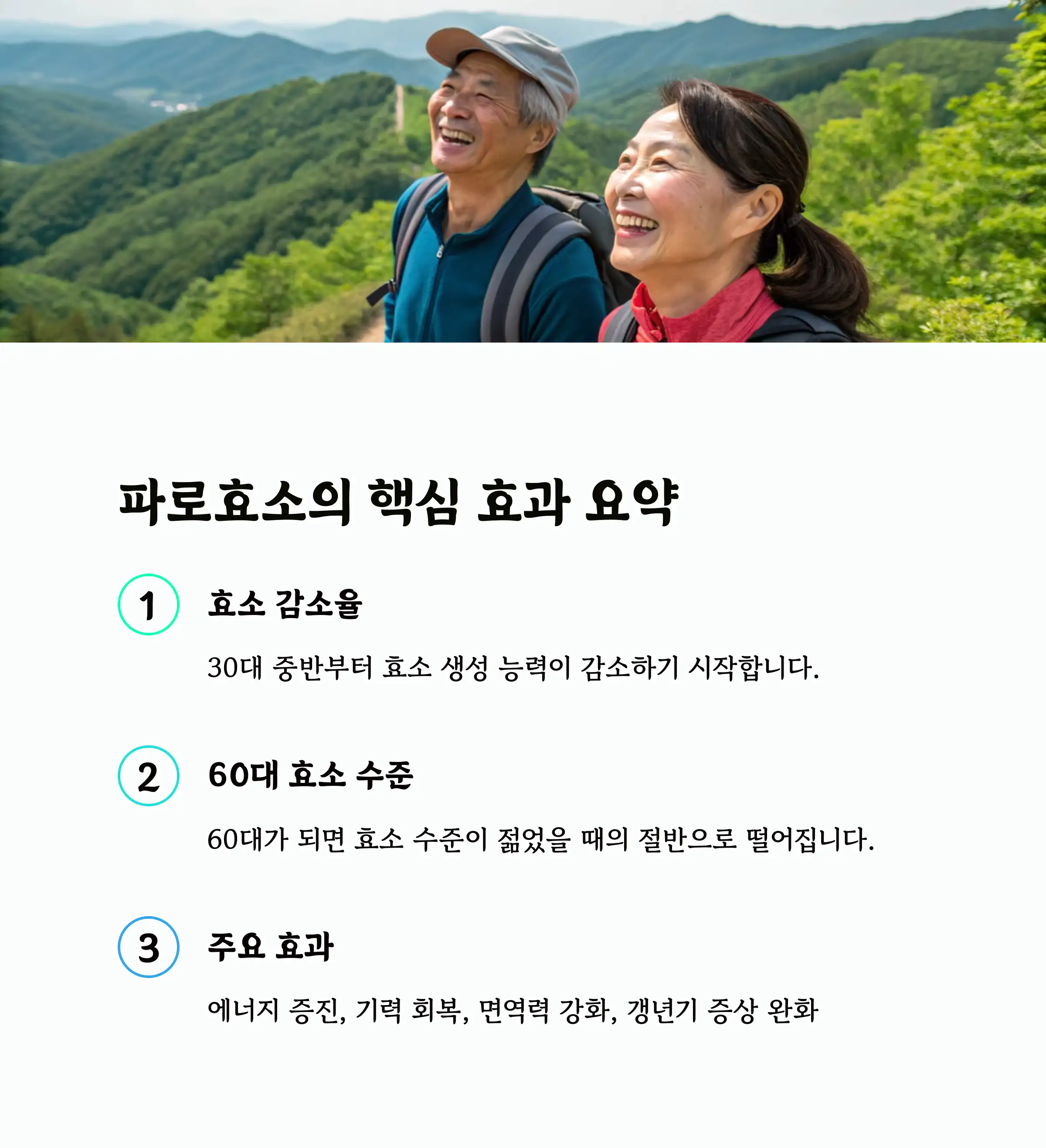 지금까지 파로효소가 중장년층의 건강에 어떤 도움을 줄 수 있는지 알아봤는데요, 핵심만 쏙쏙 뽑아 다시 정리해 드릴게요!