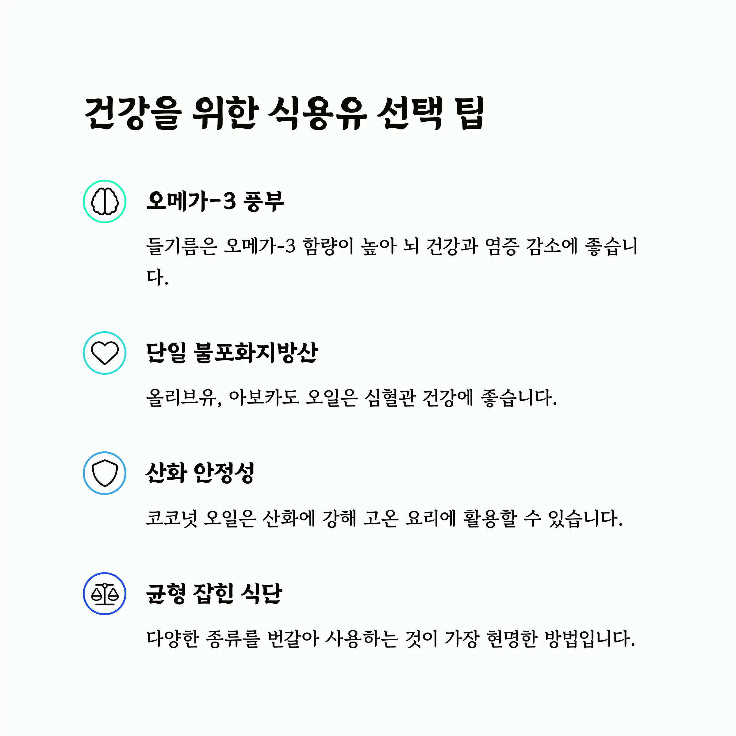 결국 중요한 건 균형 잡힌 식단이라는 거! 식용유 하나만으로 모든 건강을 책임질 수는 없으니까요. 😊